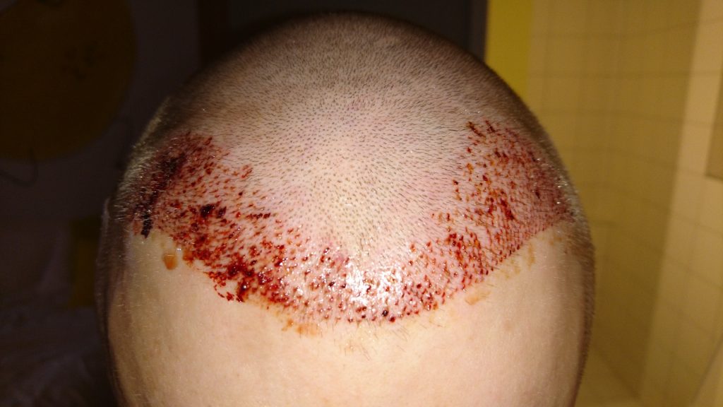 I’ve recently got back to the hotel after undergoing my FUE transplant operation. My head is a bit bloodied and sore, but astonishingly, it’s not as uncomfortable as one might think. It definitely looks more drastic than it actually feels. The pain isn’t really significant, I’m just feeling a bit tired.